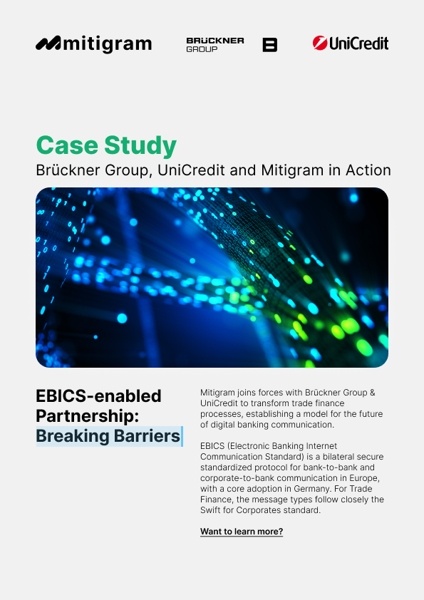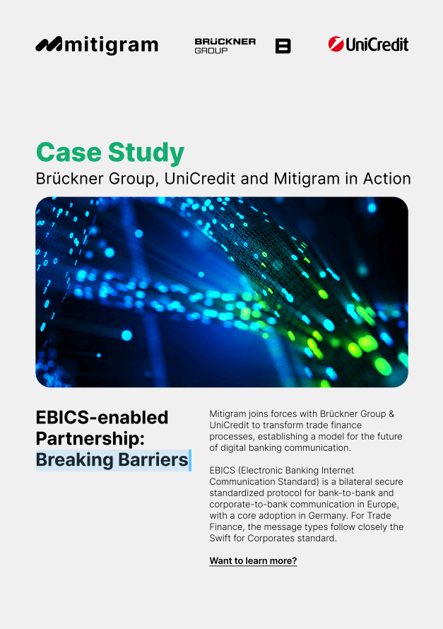 Brückner Group, UniCredit, and Mitigram collaborate to pioneer EBICS-driven trade finance transformation — a model for digital efficiency across Europe.