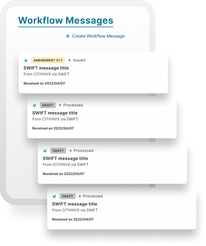 Stay connected with your banks via SWIFT, EBICS, and email directly within Mitigram. Every message is tied to the right transaction.